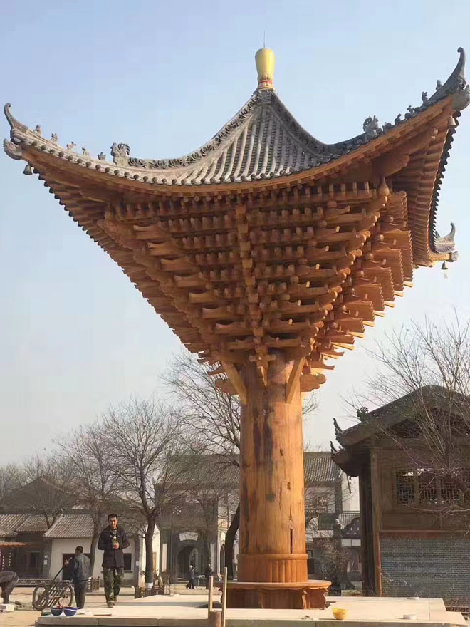 防腐木單柱斗拱亭