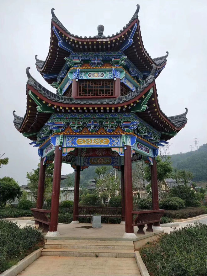 古建六角重檐彩繪亭